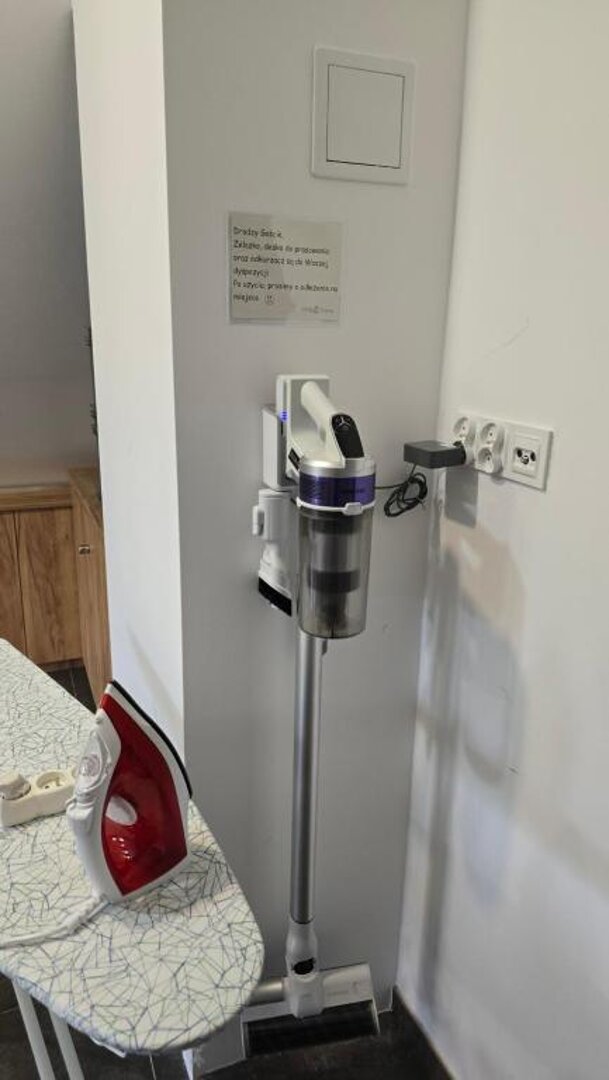 Dodatkowym atutem apartamentu jest elektryczny grzejnik do suszenia odzieży.