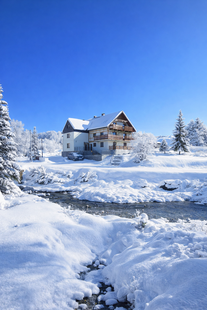 Apartament z balkonem nad górskim potokiem zachwycający widok na góry